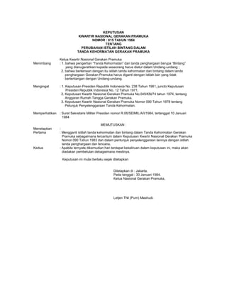 Petunjuk Penyelenggaraan Tanda Kehormatan Keputusan Kwartir Nasional